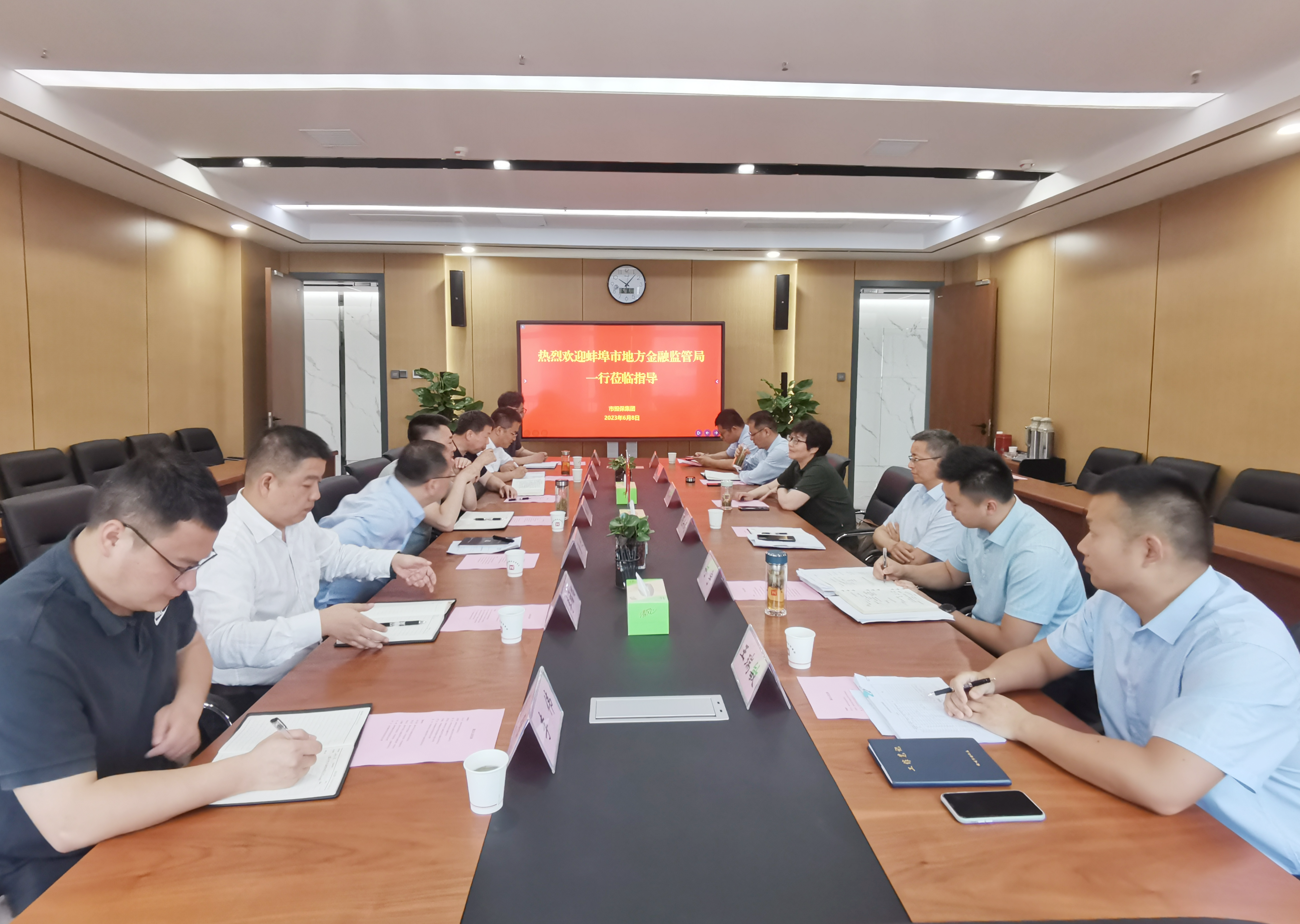 6月8日上午,蚌埠市金融局、財政局及擔(dān)保集團一行到訪滁州開展調(diào)研交流,滁州市金融局副局長劉文斌、財政局(國資委)四級調(diào)研員倪興武及市擔(dān)保集團相關(guān)領(lǐng)導(dǎo)參加座談。