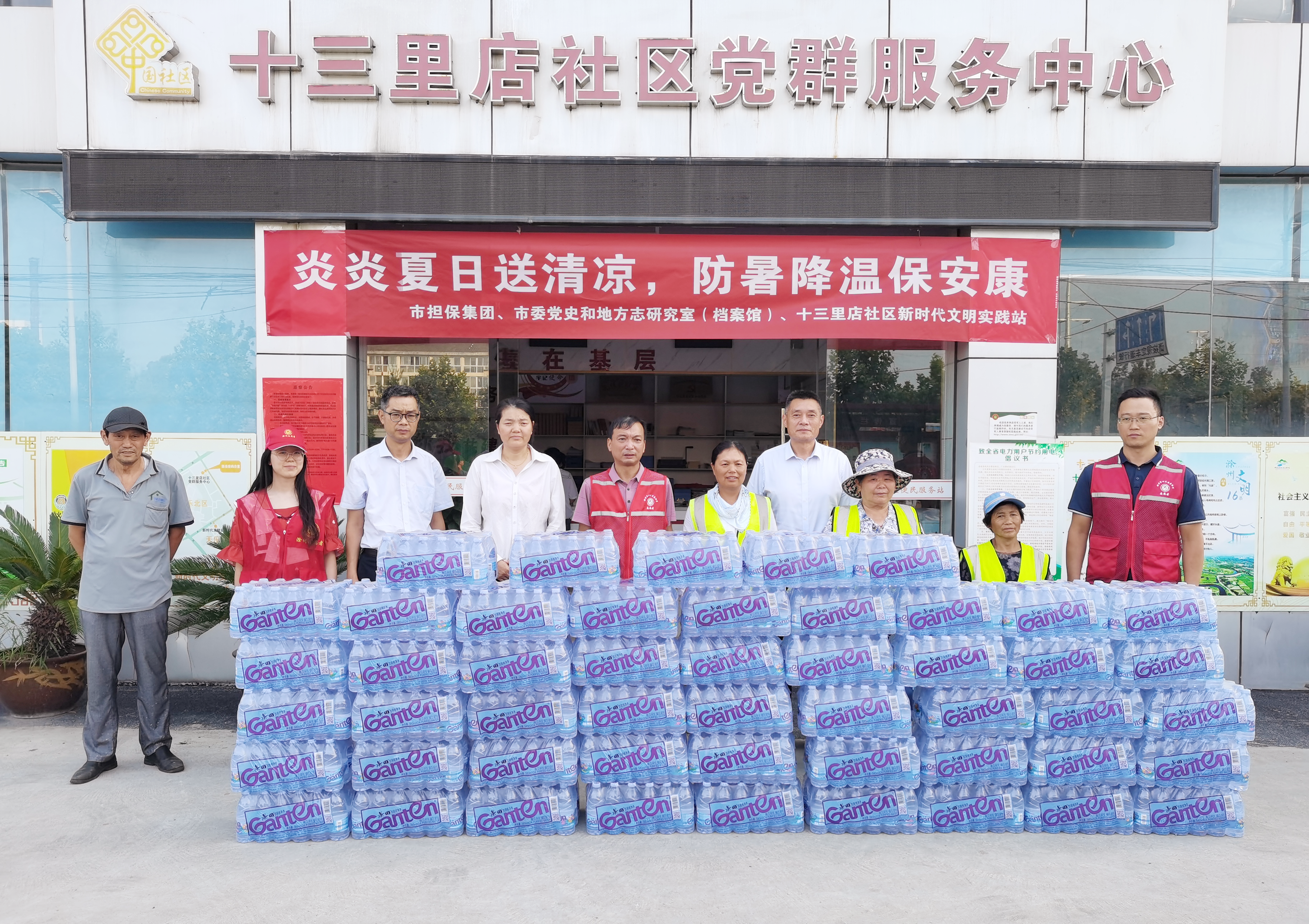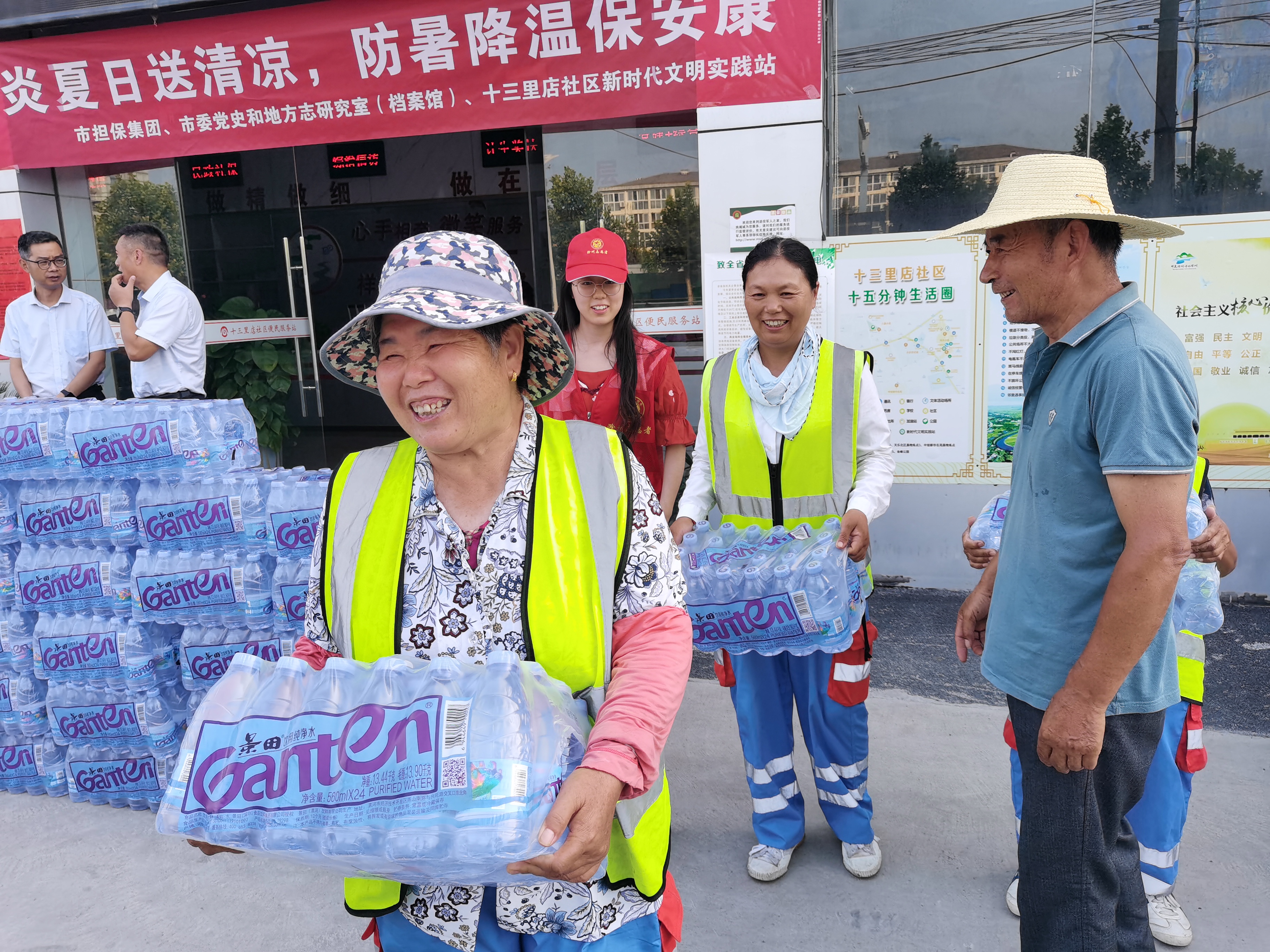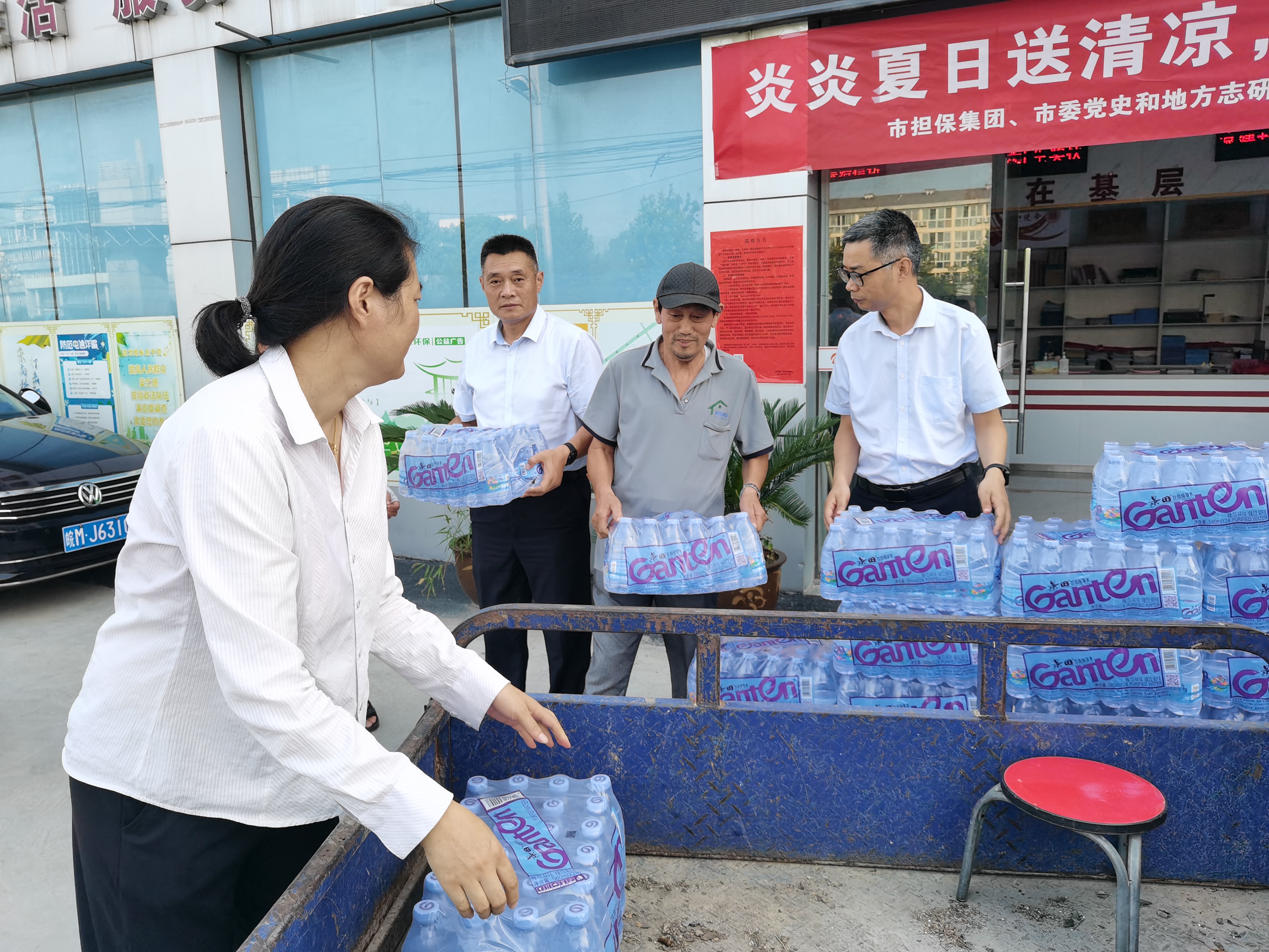 連日來,氣溫一直居高不下,處處熱浪滾滾,戶外作業(yè)的環(huán)衛(wèi)工人們頂烈日、冒酷暑,用辛勤的汗水換來干凈整潔的環(huán)境。為給他們送去一份清涼和關(guān)愛,市擔(dān)保集團(tuán)第一、第二黨支部聯(lián)合市委黨史辦、十三里店社區(qū)黨組織共同開展以“ 炎炎夏日送清涼,防暑降溫保安康”為主題的夏送清涼主題黨日活動,有效推動黨群融合,持續(xù)推進(jìn)“我為群眾辦實事 ”實踐活動走深走實。