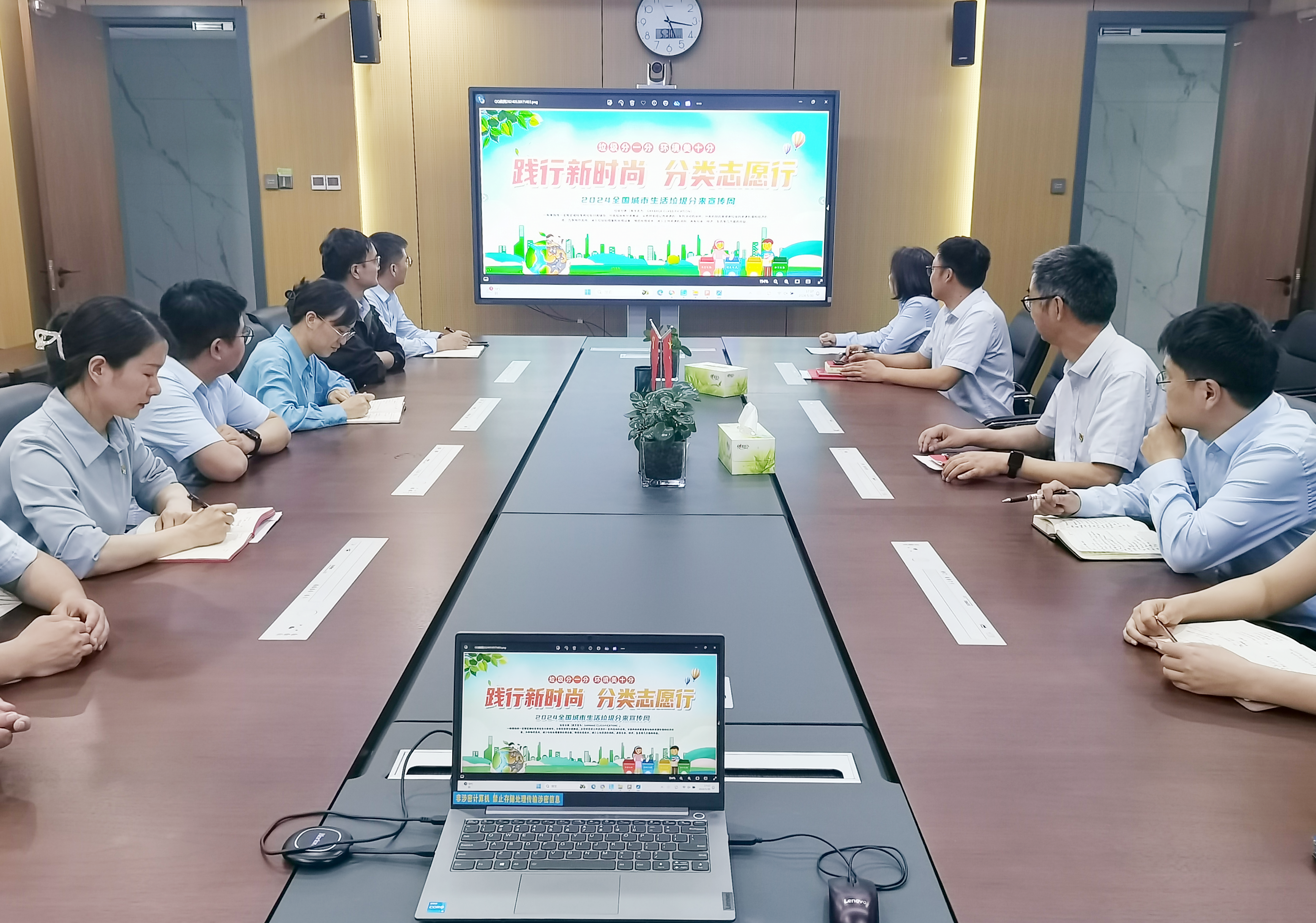 首先,制作垃圾分類宣傳APP、印發(fā)生活垃圾分類投放指南和投放指引等宣傳材料在全體職工中開(kāi)展廣泛宣傳,組織職工觀看《十四億分之一的堅(jiān)持》和《我想對(duì)你說(shuō)》等專題宣傳教育片等,讓全體員工充分了解垃圾分類的重要性必要性和正確的分類方法,倡議職工通過(guò)QQ、微信和抖音等平臺(tái)進(jìn)一步擴(kuò)大宣傳范圍,帶動(dòng)家人、朋友和身邊人從自身做起、從點(diǎn)滴做起,共同參與到垃圾分類的宣傳和實(shí)際行動(dòng)中來(lái)。