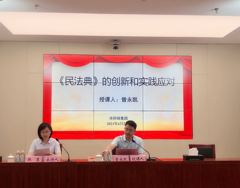 為慶祝建黨100周年,營造濃厚法治氛圍,進一步提高員工法律素養(yǎng),6月23日下午,市擔(dān)保集團邀請到滁州電大法學(xué)副教授、市理論宣講專家?guī)鞂<摇⑹小扒嗄曛v師團”講師曾永凱,為集團全體干部職工帶來了一場精彩的《民法典》的創(chuàng)新和實踐應(yīng)對專題培訓(xùn)會。