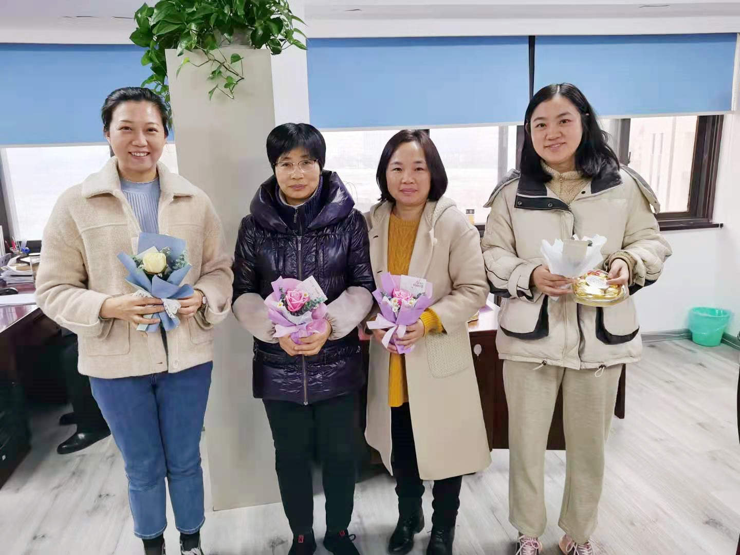 3月8日,早晨一上班,在工會(huì)的組織安排下,公司領(lǐng)導(dǎo)前往每個(gè)部門,親手將一束精心包裝的鮮花、一盒精美巧克力、一張印有溫馨祝福語的卡片,送給每一位女職工,祝她們節(jié)日快樂,工作順利,家庭幸福。