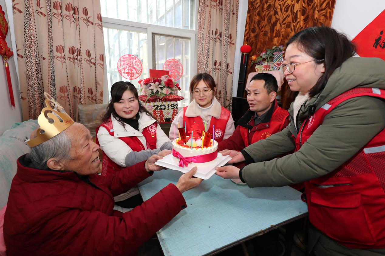 為弘揚中華民族敬老、愛老、助老的優(yōu)良傳統(tǒng)美德,進(jìn)一步倡導(dǎo)敬老、愛老、助老的新風(fēng)尚,大年初一上午,市擔(dān)保集團(tuán)志愿者和鳳凰社區(qū)工作人員來到了87歲空巢獨居老人何永真的家中,為老人準(zhǔn)備了熱騰騰的水餃和生日蛋糕,為老人準(zhǔn)備一場溫馨而又充滿歡樂的生日宴。