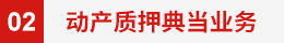 動產(chǎn)典當(dāng)業(yè)務(wù)內(nèi)容:機器設(shè)備、庫存物資等。